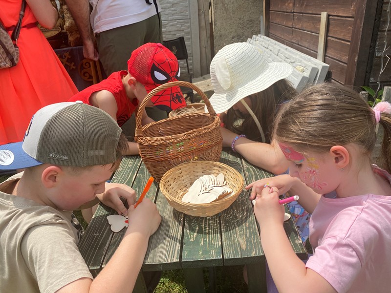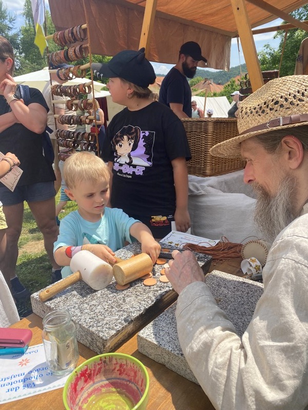 V stánku umeleckého rezbára Huberta H.B.Art ste mohli vidieť prekrásne drevorezby a vypaľovanie do dreva. Deti si tu mohli ozdobiť drevenú dekoráciu motýlika na zavesenie:) Pri kožiarovi Alatyr si zasa vlastnoručne vyrábali kožené amulety pre šťastie.