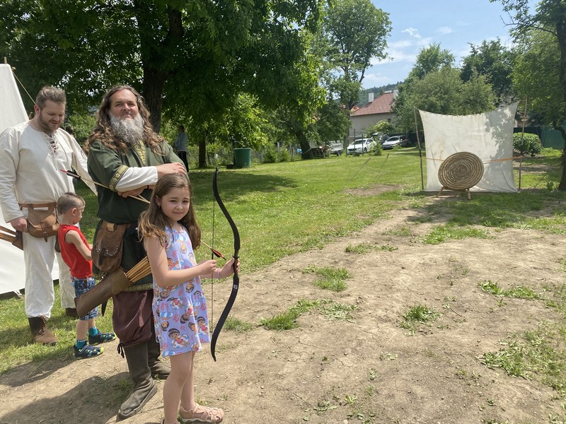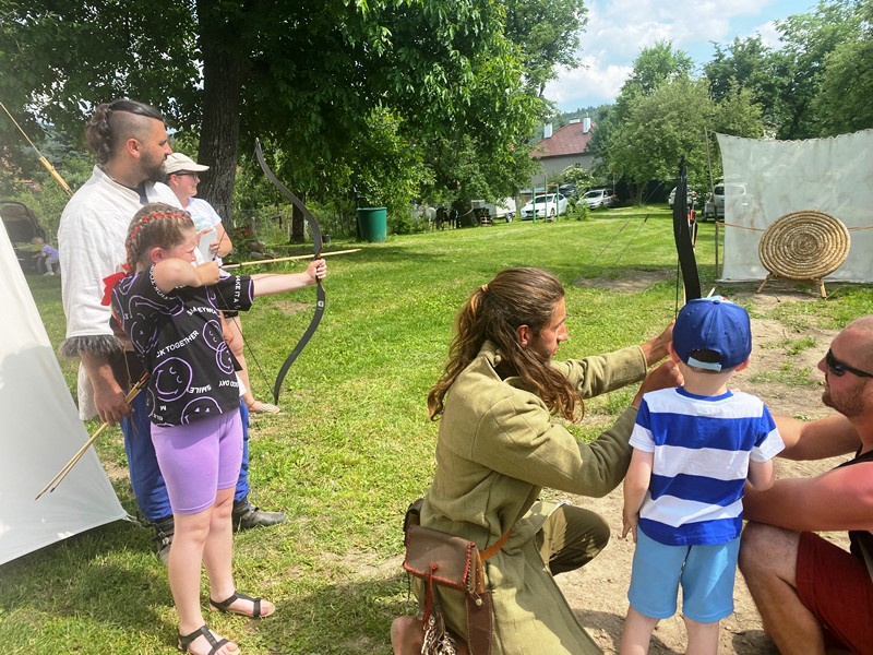 V stanovišti s lukostreľbou dohliadali na bezpečnosť lukostrelci z historickej skupiny Vlčí tesák.